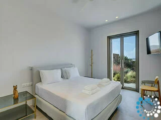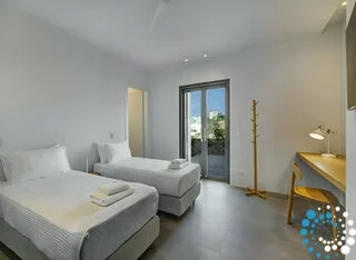 De villa beschikt over drie slaapkamers met en-suite badkamer in het hoofdgebouw en twee extra gastensuites met een aparte toegang via de binnenplaats, wat volledige privacy en comfort biedt.