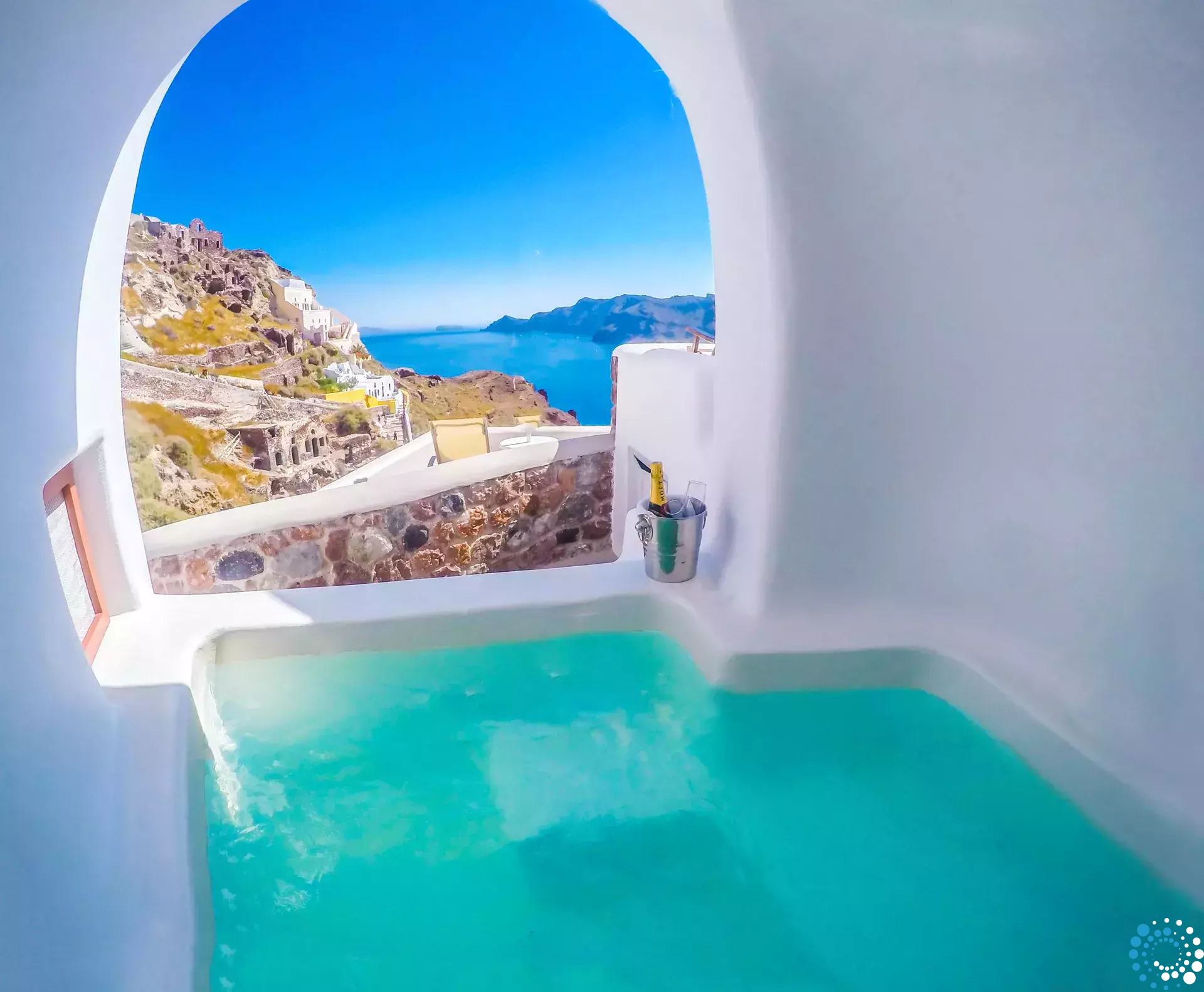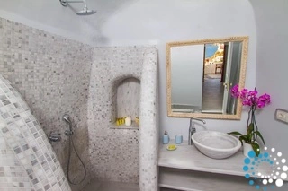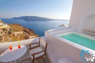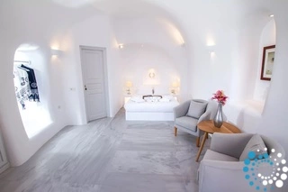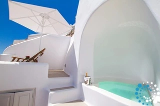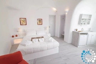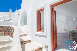 Villa Volcano met buitenjacuzzi biedt plaats aan maximaal 2 personen en beschikt over een slaapkamer met een groot tweepersoonsbed en een aparte zithoek met een minibar en een waterkoker. De badkamer is voorzien van een douche, gratis toiletartikelen, een haardroger, slippers, badjassen en handdoeken voor bij het zwembad. De jacuzzi’s bevinden zich op het terras van elke kamer. Het terras is uitgerust met een set tuinmeubilair – parasol en stoelen – en biedt een adembenemend uitzicht op de caldera, de naburige eilanden en de Egeïsche Zee.