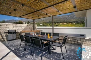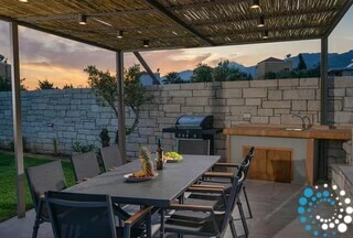 Buiten komt Villa Vounisia echt tot zijn recht. Een uitnodigend infinity zwembad kijkt uit over het landschap, aangevuld met een zonovergoten terras en weelderige tuinruimtes die perfect zijn om te ontspannen. Gasten kunnen genieten van buiten dineren met de ingebouwde barbecue, relaxen in de loungezones buiten of eenvoudig fietsen stallen. De omgeving is ontworpen voor lange, ontspannen dagen onder de Kretenzische zon.