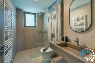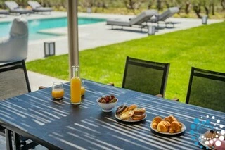 Binnen is de villa even goed uitgerust, met overal airconditioning, een volledig uitgeruste moderne keuken en een wasmachine voor langere verblijven. Privéparkeergelegenheid op het terrein zorgt voor extra gemak.