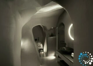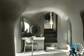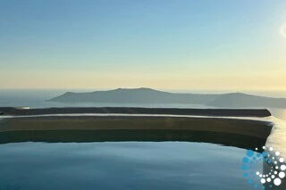 This five-star hotel enjoys a prime position in Imerovigli, the most secluded area of Santorini. While the island buzzes with travelers for much of the year, Imerovigli remains its quietest and most intimate neighborhood, home to only a handful of boutique hotels and a couple of fine-dining restaurants that gently punctuate the peaceful atmosphere. Unlike many Santorini properties, reaching this hotel requires no steep descent—you can simply drive directly to a reserved parking spot at the entrance of the main building, with only about twenty steps leading down to the second level.