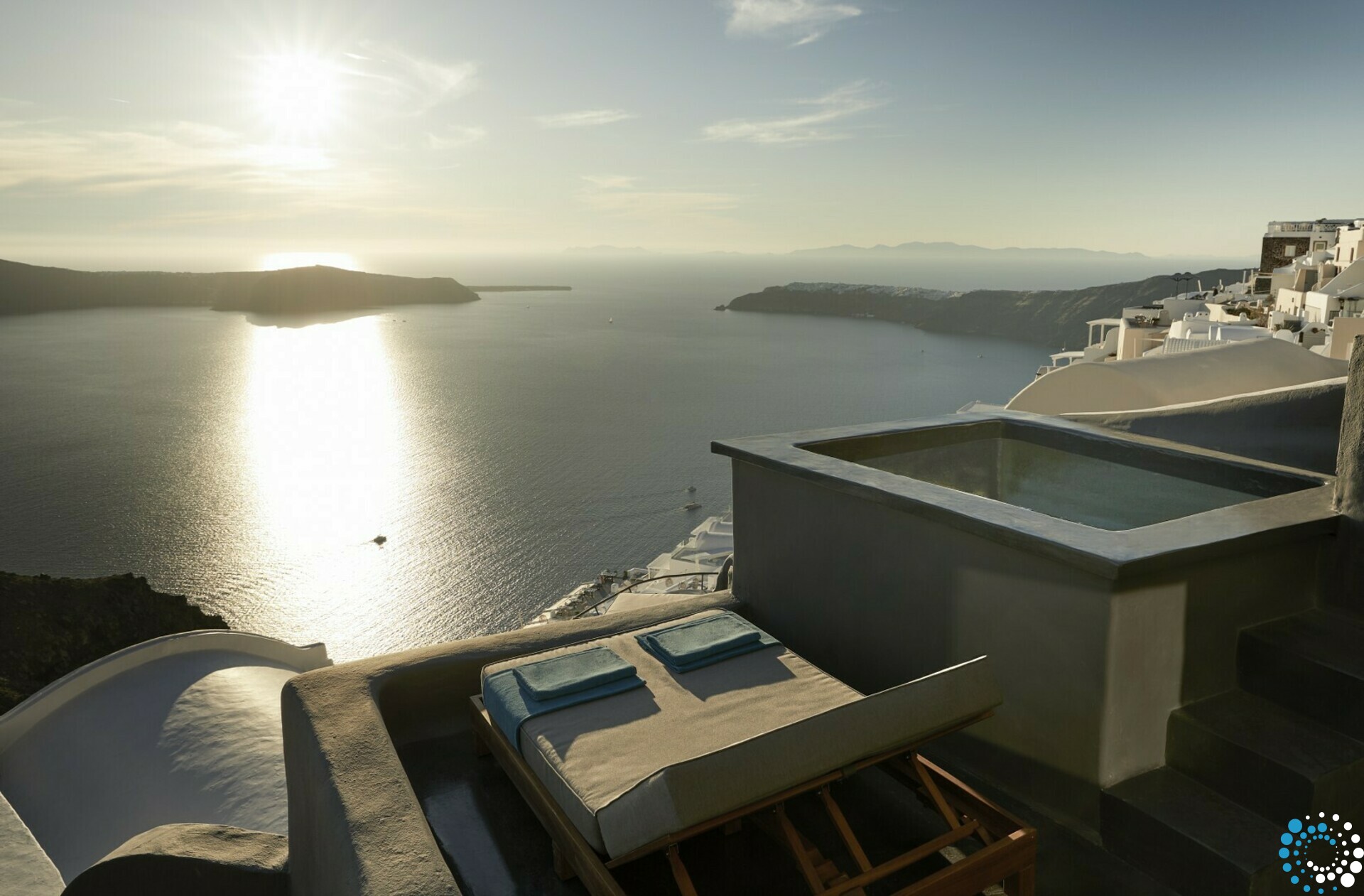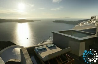Adding to its uniqueness, the hotel offers an exceptionally romantic feature rarely found elsewhere on the island: every bedroom is oriented toward this spectacular view, and the windows are subtly curved so that, no matter the season, the day’s final sunbeams fall directly onto your bed. As for the accommodations themselves, the property offers Suites and Villas with indoor or outdoor pools and Jacuzzis, a Hammam, private treatment rooms, and other exclusive five-star amenities. Combined with the hotel’s gourmet restaurant and sky bar, these elements elevate your stay into a truly memorable luxury experience.