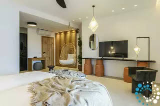 The suite's most unique feature is the in-door cradle, an exquisite addition that adds a touch of elegance and sophistication to the space. The cradle, designed to provide a serene and peaceful experience, is the perfect place to unwind and relax after a long day.