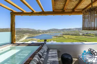 This resort suite in Mykonos provides a luxurious 5-star stay, featuring an infinity pool, a full spa and wellness centre, a modern fitness facility, sun terraces, and beautifully landscaped gardens. Guests have access to free WiFi, an on-site restaurant and bar, along with numerous services such as a 24-hour reception and concierge support.
