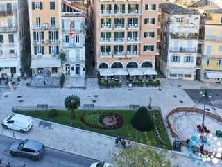 The private balcony — a truly rare feature in Corfu Old Town — overlooks the Spianada Square and offers beautiful views towards the Old Fortress. An ideal spot to enjoy the town’s atmosphere from above while sipping your morning coffee or a sundowner.