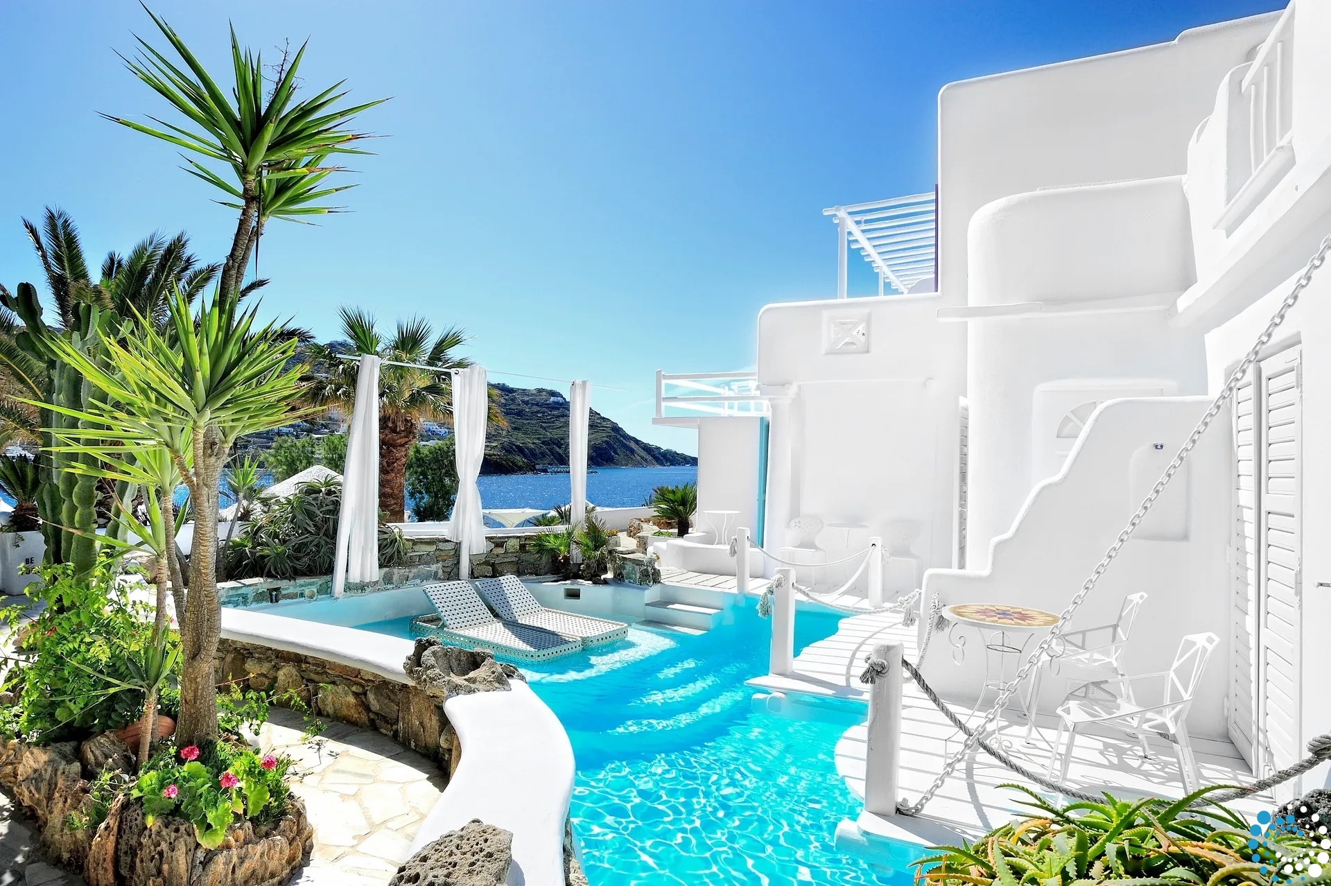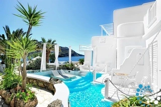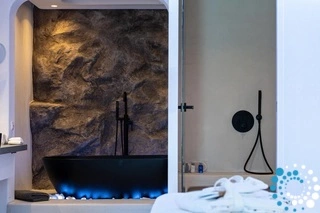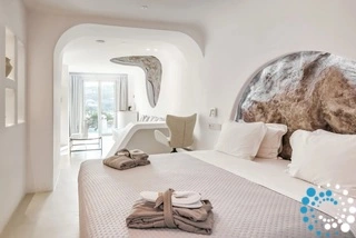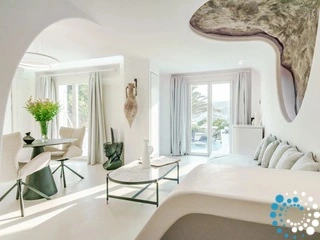 The stunning architecture and incredible interior design of all rooms, suites, villa, SPA, restaurants, and public areas are truly inimitable. They surpass the notion of simply making it one of the best boutique design hotels in Mykonos or among the best 5-star hotels in Greece.