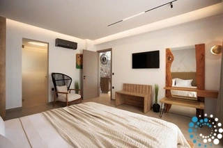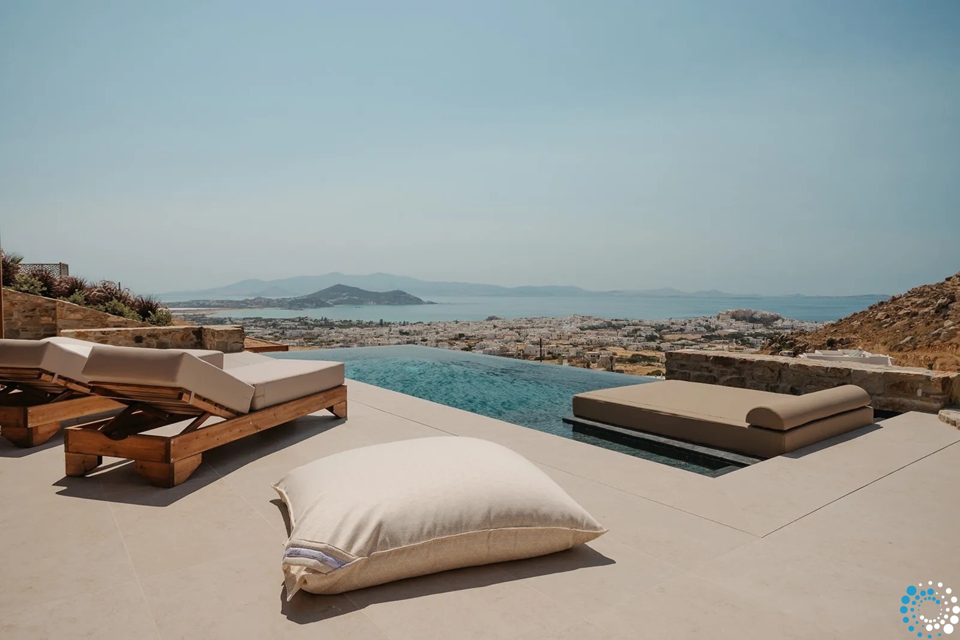 Villa Limestone is tucked away within a charming complex in Chora, Naxos. Built into the mountainside, the villa features a distinctive and sophisticated design, radiating a sense of elegance and luxury. With stunning panoramic views and surrounded by untouched natural landscapes, this exceptional property is sure to leave a lasting impression. Only a short 5-minute drive from the vibrant atmosphere of Naxos Town, it offers a tranquil escape where peace and relaxation reign supreme—a perfect spot to unwind and fully enjoy your stay.