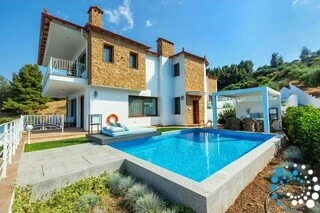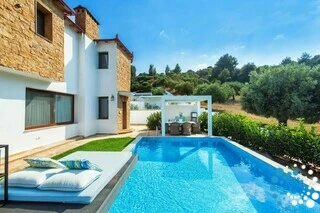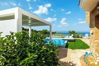 Experience ultimate relaxation in this 79 sqm suite, complete with a private 33 sqm pool and breathtaking sea views. Designed for comfort and style, the suite features a spacious bedroom with a cozy double bed, a separate living room with convertible sofas, a dining area, and a fully equipped kitchen perfect for preparing your favorite meals.
