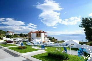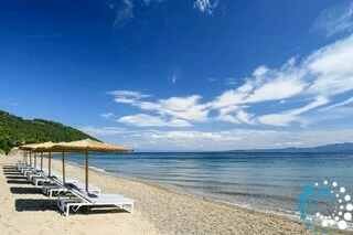 Step into the crystal-clear waters of Halkidiki, just moments from your accommodation. Our private beach, only 120 meters away, offers calm, inviting waters perfect for swimming. Whether you prefer lounging by the pool or the sea, complimentary umbrellas and sun loungers let you soak up the sun in comfort.