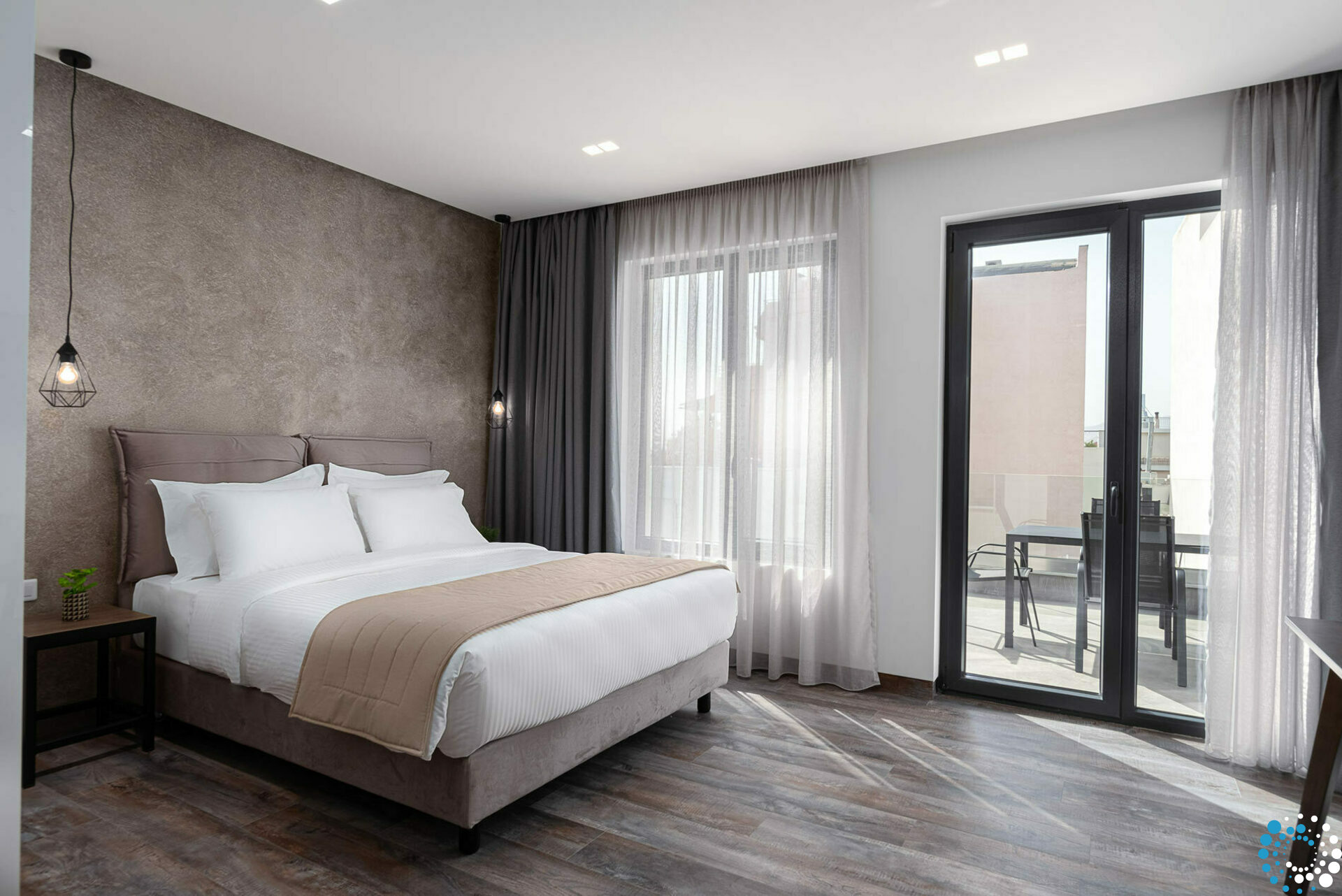 Discover the perfect balance of city energy and serene retreat at this brand-new boutique hotel in the heart of Athens. Boasting sleek, contemporary design and freshly minted interiors, it offers a modern, stylish stay just steps from vibrant bars, bustling markets, and the rich cultural pulse of the city. With the Acropolis towering nearby, this location is ideal for exploring both ancient landmarks and the cosmopolitan charm of Athens. Iconic sites such as the National Theater of Greece and the Ancient Agora are less than a kilometer away.
