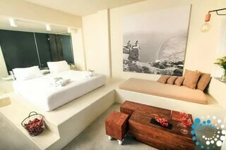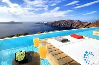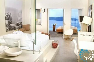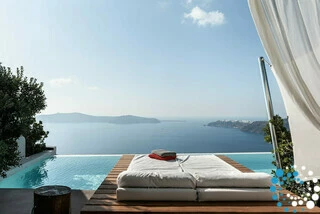 Experience the pinnacle of luxury in Suite Pneuma, perched above the stunning vistas of Santorini. Flooded with Aegean sunlight, this elegant retreat features a sleek, minimalist design with open basins and glass partitions, creating a serene and modern atmosphere. Step onto your private veranda, seemingly floating above the pool, and take in the mesmerizing volcanic views. Every element of this suite is thoughtfully designed to blend natural beauty with sophisticated style, offering an unparalleled escape for ultimate relaxation.