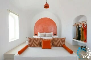 Blending authentic Cycladic architecture with contemporary comfort, Suite Purple is designed with soft pastel hues, natural wood accents, and a relaxed boho-chic aesthetic that feels warm yet sophisticated. Outdoors, a private plunge pool invites you to unwind under the island sun, an ideal escape from Santorini’s livelier spots.