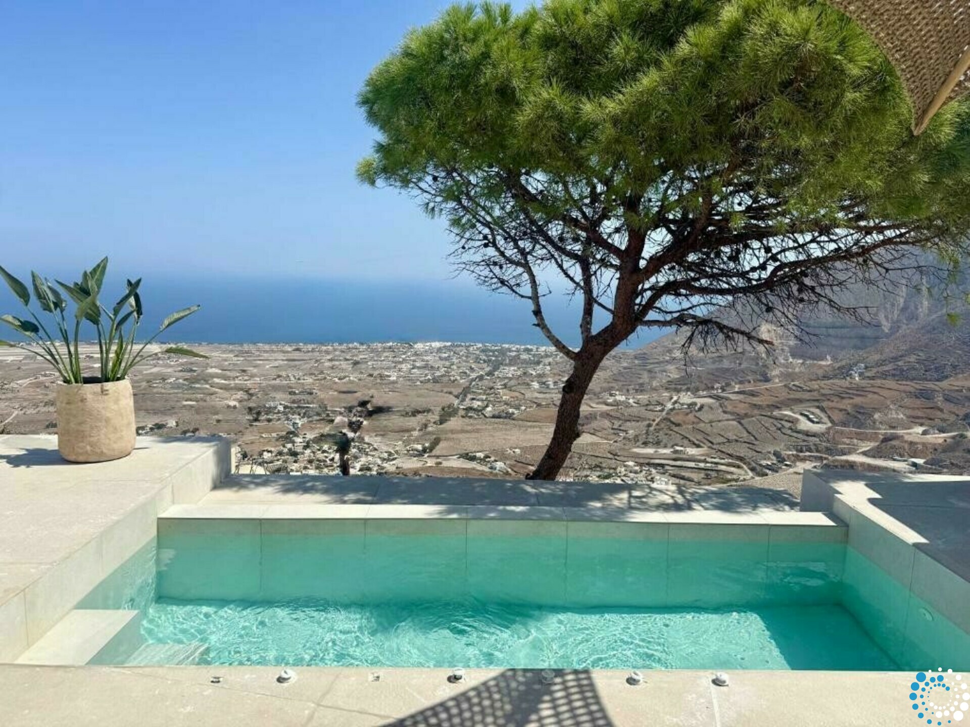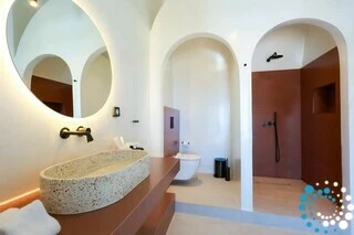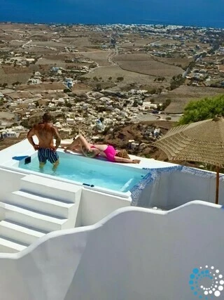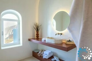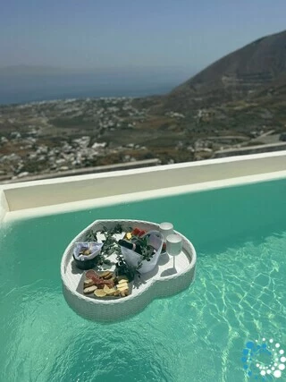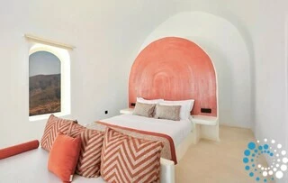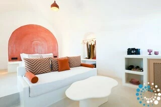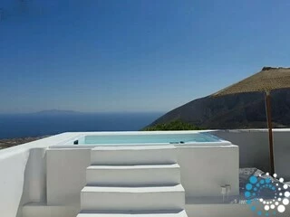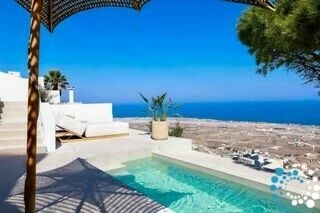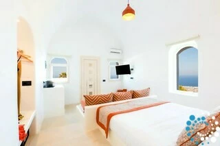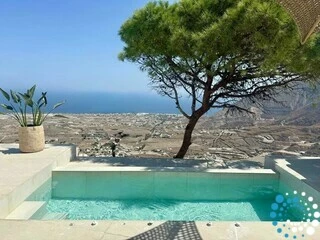 The suite enjoys a convenient yet secluded location, just a short drive from Fira, as well as Thermes Beach and Santorini International Airport.