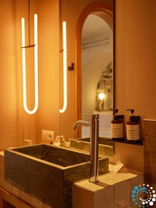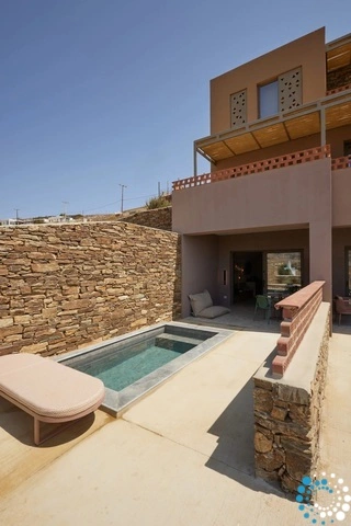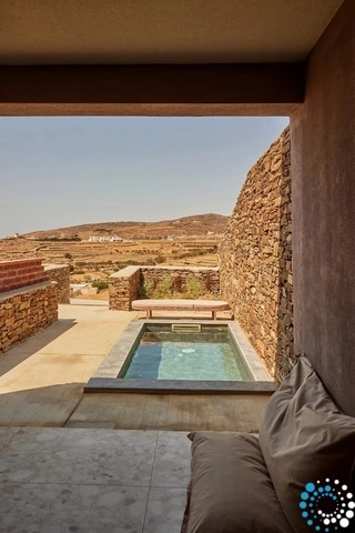 Blending Cycladic charm with contemporary aesthetics, the property creates a meaningful connection to local art and the island’s rich agricultural heritage. Its minimalist, earthy architecture harmonizes effortlessly with Tinos’ cosmopolitan energy while remaining true to the island’s character.