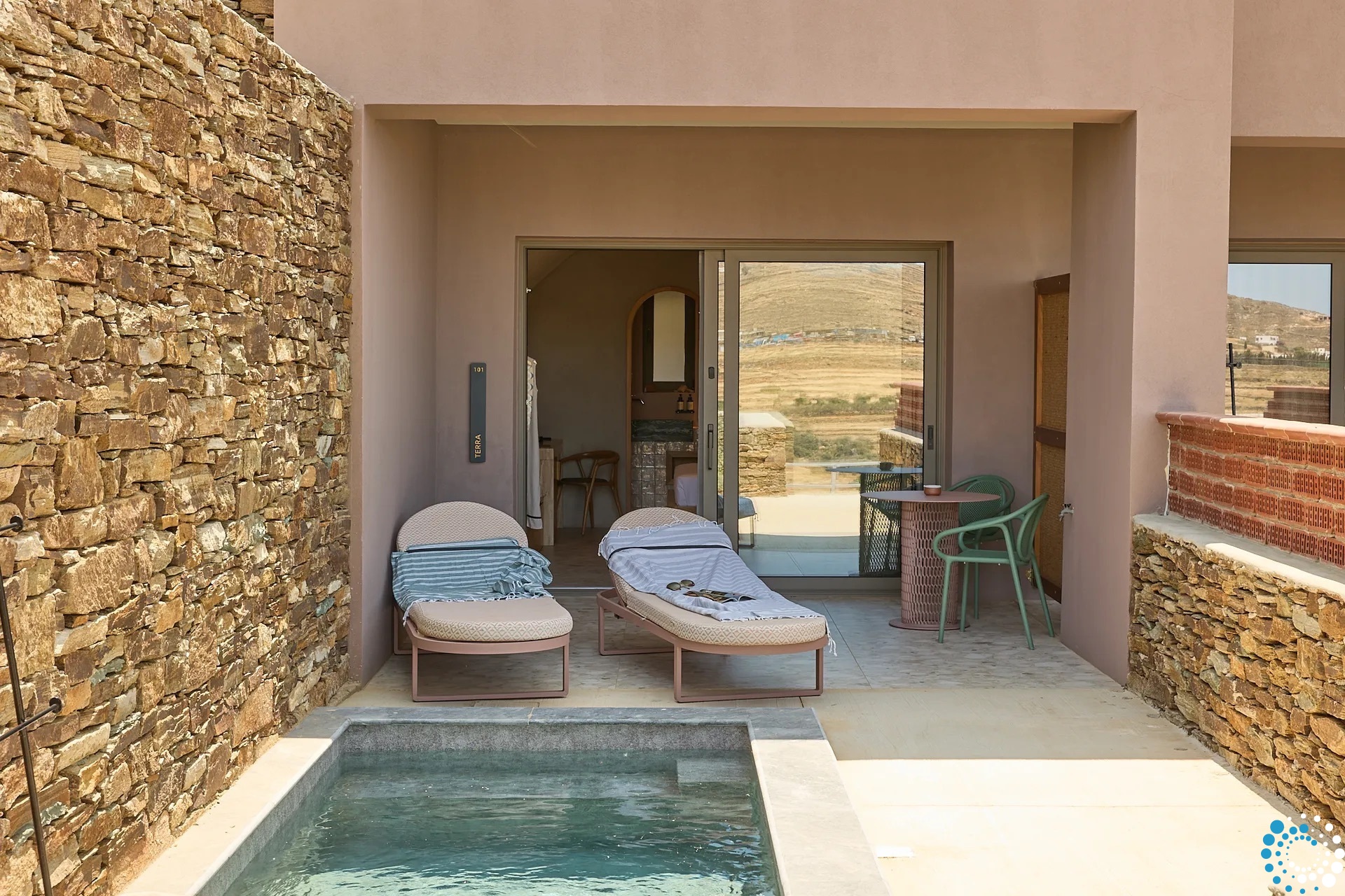 The suite is part of a newly built boutique hotel ideally situated just steps from the heart of beautiful Chora in Tinos, introducing a fresh holiday concept inspired by the true spirit of the Cyclades.