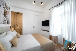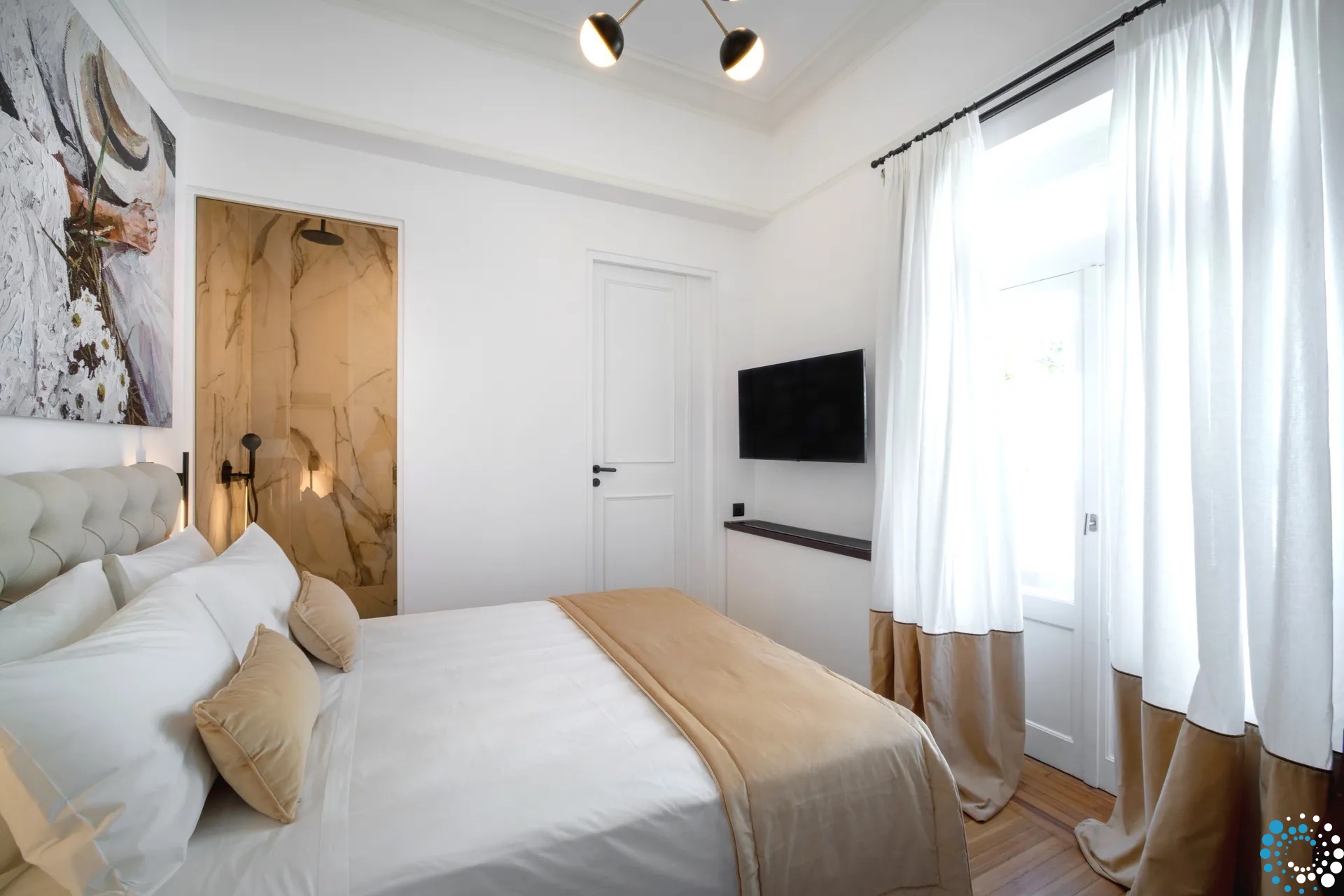 Suite Simeio is situated in a luxury building which boasts 6 rooms & suites of remarkable design. Combining elegant comfort and the charm of neoclassical times, showcasing intimacy and luxury. Within each space, you will indulge in a vibrant atmosphere, bold colors, exquisite details, good vibes, and most of all, the meaningful elegance you deserve to begin a new day or to perfectly end another. As you contemplate the city from your balcony, you will feel the warm light that fills the space to bring you energy. You deserve a stay in an accommodation as exceptional as you are.