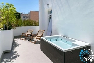 Showcasing a spacious terrace with an outdoor Hot Tub and view to historic Athens and the verdant Lycabettus Hill, it is ideal for couples who seek elegance and relaxation.
