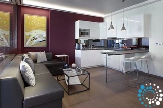 Perfect for families, groups of friends, or business travelers, the suite is equipped with high-speed internet, work desks, and, upon request, a laptop and wireless printer. The living room can even transform into a meeting space for up to 5 people, making work trips both comfortable and productive.