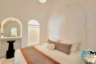 ExplorePerched at the highest point of Pyrgos Kallistis, Suite Tangerine offers an exceptional vantage over Santorini, where sweeping island views meet the endless blue of the Aegean. This serene hideaway, located near the historic Kasteli Castle, combines elevated privacy with a peaceful atmosphere, ideal for a truly restorative stay.