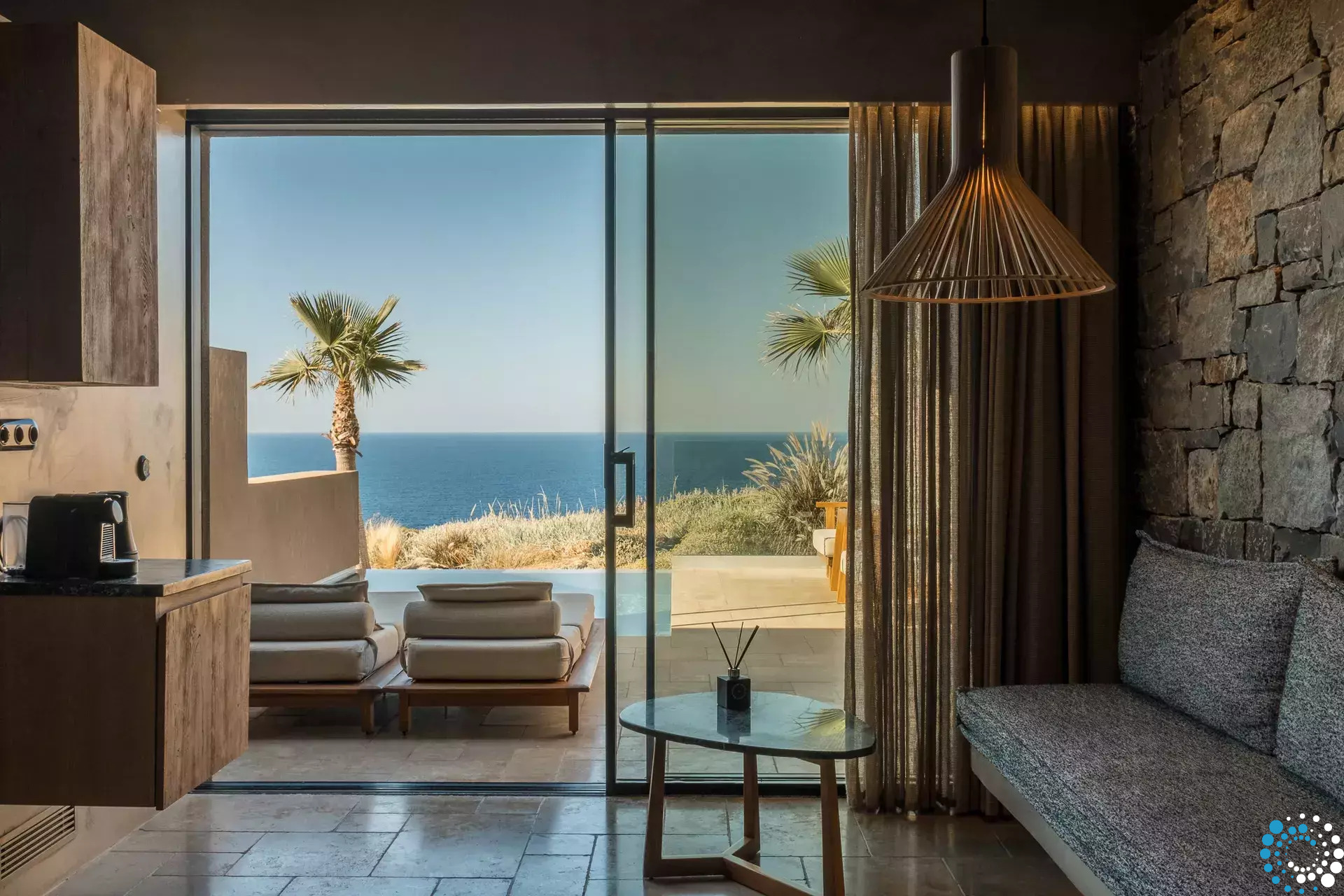 The complex features 49 exclusive suites and villas, each thoughtfully designed to maximize comfort, light and panoramic sea views. Many accommodations include private or infinity pools, spacious terraces and indoor-outdoor living areas that invite relaxation from sunrise to sunset. The layout ensures privacy while maintaining a sense of openness to the surrounding nature.