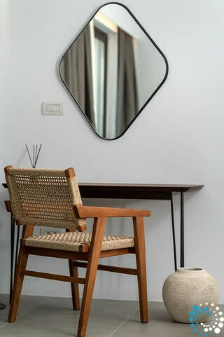 The design of the hotel combines modern minimalism with elements inspired by the earthy tones and natural materials of Milos, resulting in a refined and harmonious atmosphere.