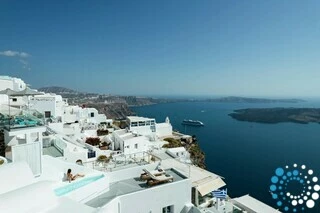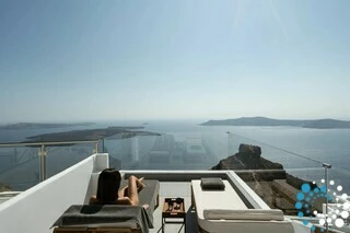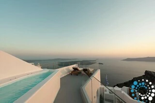 Perched directly above the legendary Skaros Rock, the suite offers breathtaking 180-degree views, stretching from Oia in the north to Akrotiri in the south. Guests can enjoy spectacular vistas from sunrise to sunset, making it the ultimate spot to experience Santorini’s world-famous sunsets.