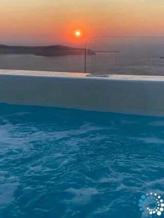 Indulge in ultimate relaxation with a heated jacuzzi offering panoramic views, complemented by sun-soaked terracesand shaded lounge areas. Savor breathtaking caldera and sunset vistas from a four-person plunge pool on the 40 m² terrace, complete with sun loungers, umbrellas, and a covered lounge area.