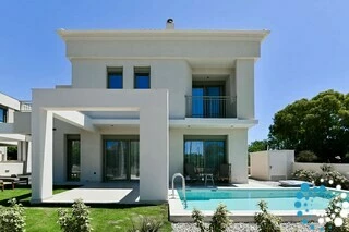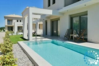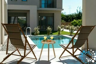 This villa is part of an exclusive complex of four newly constructed, elegantly designed maisonettes, thoughtfully integrated into the surrounding landscape. With earthy tones, clean architectural lines, and natural materials, the design exudes a sense of calm sophistication and understated luxury.