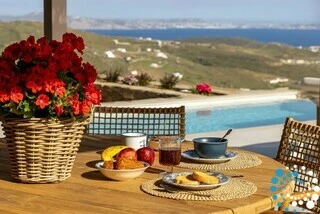 Featuring private parking and stunning panoramic views extending to Delos and the surrounding islands, Villa Agape provides a peaceful and authentic Cycladic retreat.