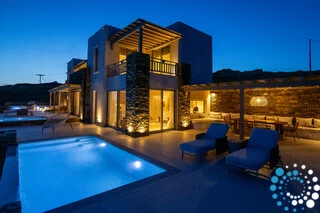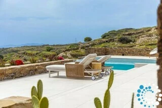 Located on the picturesque island of Tinos, this elegant stone villa harmoniously combines contemporary design with traditional Cycladic architecture. Ideally situated close to Tinos Town and nearby charming villages, it serves as a perfect starting point for discovering the island.