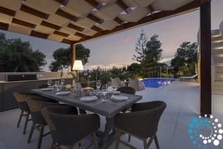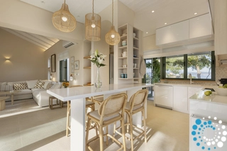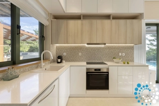 From the moment you enter Villa Aitherion, a warm sense of comfort surrounds you. The property features two spacious living rooms, one on each level, offering flexibility for relaxation, social gatherings, or quiet moments. Large openings invite natural light throughout the day, highlighting the villa’s elegant design and harmonious atmosphere.