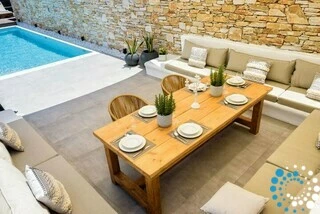 Villa Alabaster can accommodate up to 12 guests and 2 infants (up to 2 years old) across its four beautifully designed bedrooms, complemented by three modern bathrooms. The villa has been thoughtfully equipped with everything you need for a memorable stay. The private pool is designed for both exercise and relaxation, featuring a counter-current swimming system for a refreshing workout and a hydromassage function to soothe your body after a sunny day.