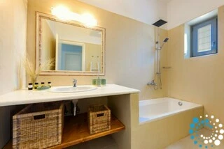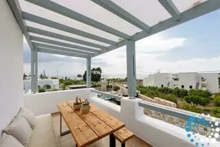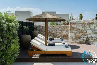 Guests can relax by the heated private pool or unwind on the beautifully decorated terraces while enjoying the serene surroundings. Villa Alabaster is ideally located just a short walk from the beach of Drios and only one kilometer from the world-renowned Golden Beach. Restaurants, cafes, and mini markets are all nearby, providing everything you need for a perfect Greek island getaway.