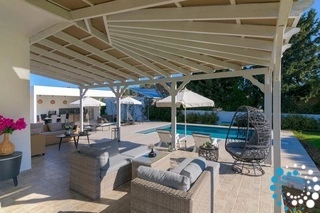 Designed to accommodate up to eight guests, Villa Alyssum is decorated with unique furnishings that create a welcoming and unforgettable atmosphere, making it the perfect base for exploring the beauty and charm of Rhodes.