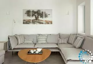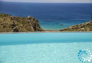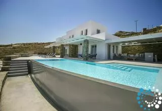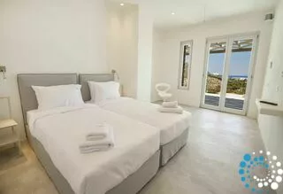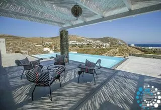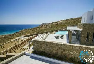 Set on a 4,000-square-meter plot shared with its sister property, Villa Amethyst II, the villa offers a secluded retreat just 300 meters from the golden sands of Elia Beach, boasting uninterrupted views of the sparkling Aegean Sea.
