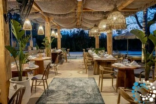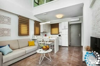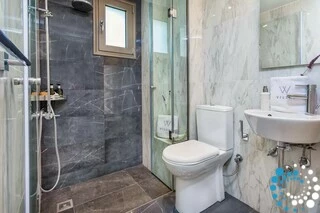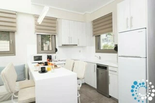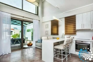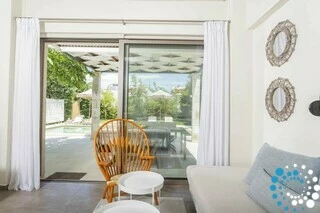 This 120 m² villa is arranged over two floors connected by a marble staircase and is located just 200 meters from the private beach, which can be accessed directly through the property. Guests enjoy a designated beach area equipped with private sunbeds, umbrellas, cushions, and coffee tables.