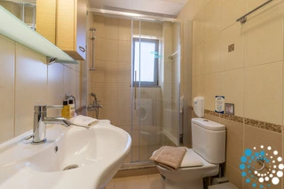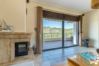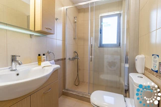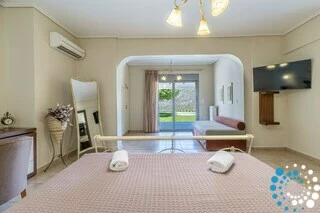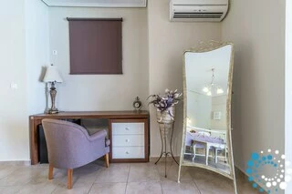 The 1stfloor, of 67 m2, consists of one big space; a kitchen –dining room and a comfortable living-room with a fireplace and a WC. The spacious balcony of this floor also allows access to the garden and swimming pool.