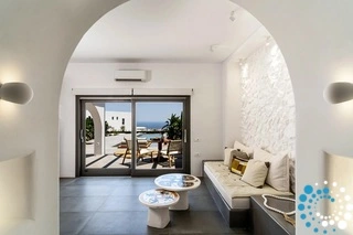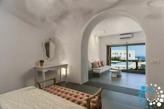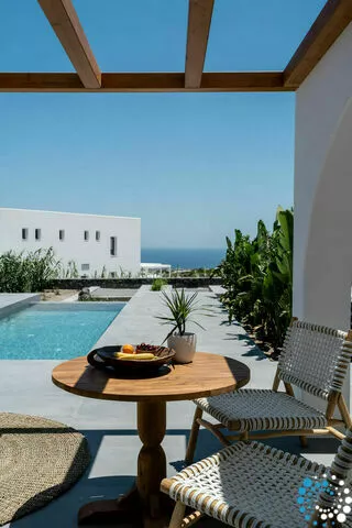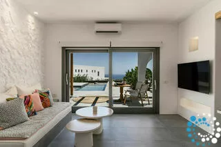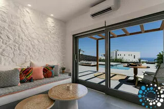 Enjoy the tranquillity and elegance of our one bedroom Villa, featuring a Private Heated Pool, sofa bed, air-conditioning, flat-screen TV, bathrobes, slippers, and bathroom amenities. The Villa is 50 sq. meters and can accommodate up to three people. Villa Aphrodite is designed for privacy, comfort, and romance, making it ideal for couples, honeymooners, or even a small family seeking an exclusive escape in the heart of the Aegean. Wake up to panoramic sea vistas, with the deep blues of the Aegean stretching to the horizon.