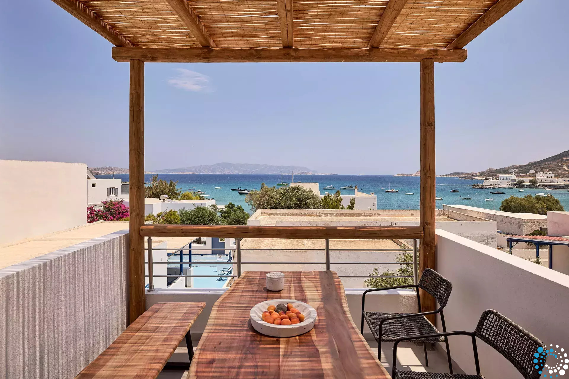 Focusing on comfort, personalized service and a peaceful environment, Villa Apoleya is an excellent base for relaxation and discovering the beauty of Milos. Its convenient location close to the island’s beaches and main attractions ensures a memorable and restful stay enhanced by modern amenities. Guests can enjoy garden and inner courtyard views from the furnished terrace and balcony, while interior features such as air conditioning, heating, soundproofing, a flat-screen TV and free Wi-Fi provide year-round comfort.