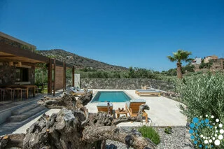 Inspired by the legendary Naxian stone, abundant in Elounda and the surrounding areas, which was once used by ancient warriors to sharpen their blades, the villa is steeped in a sense of timeless authenticity.