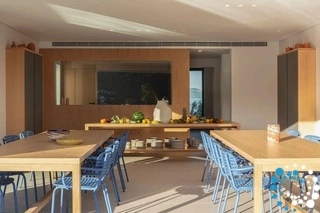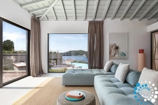 When the sun is out, the spacious terrace becomes the centerpiece of the home. It offers multiple inviting lounge areas, a large shared swimming pool, and a communal outdoor barbecue—ideal for leisurely gatherings under the warm Greek sun. Whether soaking up the rays by the pool or enjoying a quiet moment on the terrace, there are plenty of relaxing outdoor spaces to enjoy.