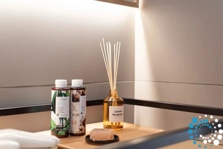 The complex’s shared centerpiece area is the perfect spot to gather, from morning coffee to sunset cocktails, by the infinity pool. The four villas are thoughtfully positioned to offer both privacy and a sense of community. This central area also features a wellness zone, where guests can enjoy rejuvenating moments in the sauna or an energizing workout in the gym.