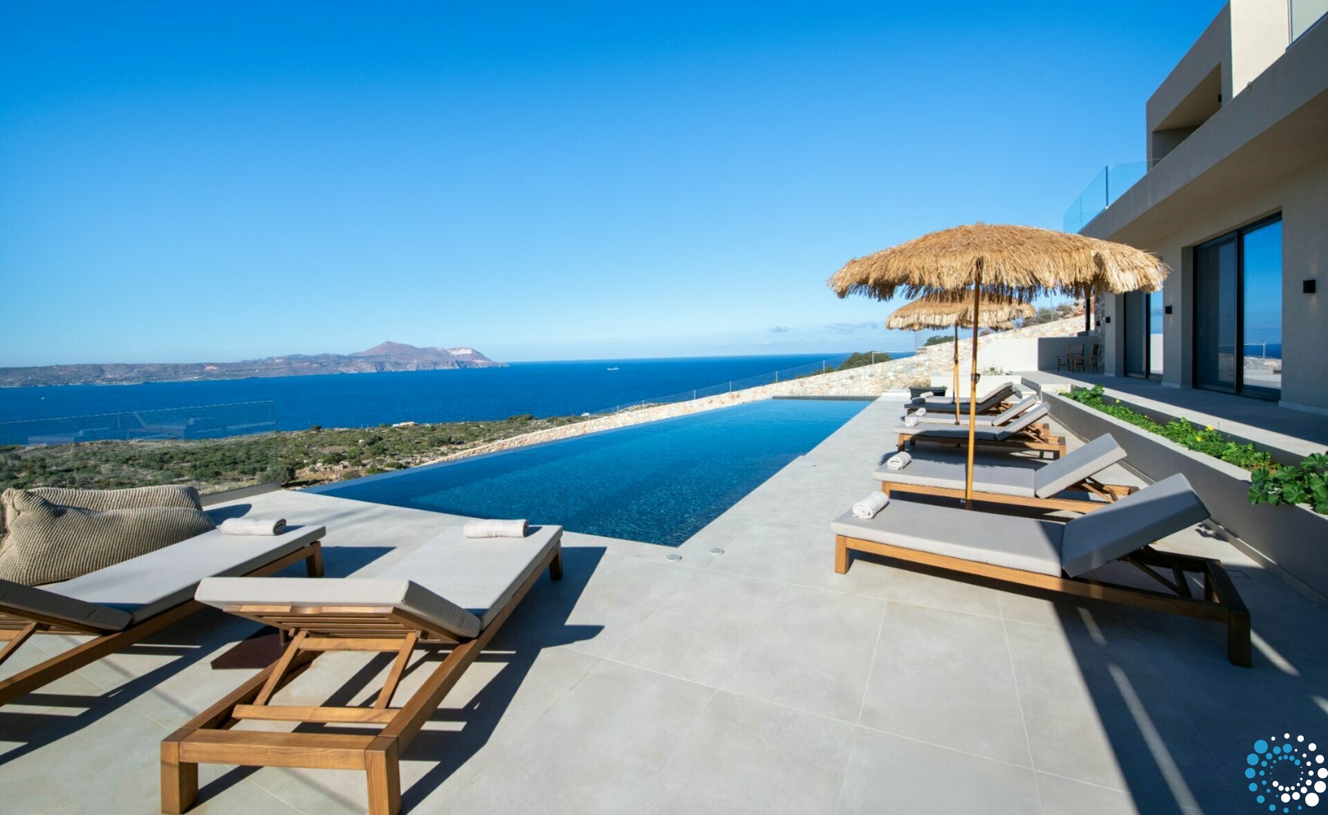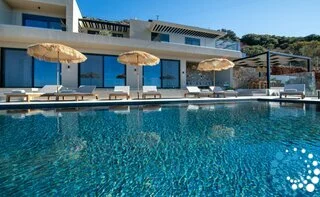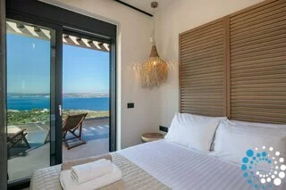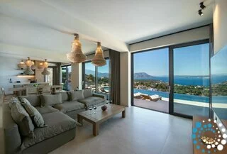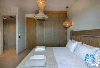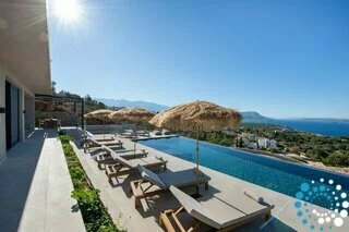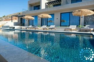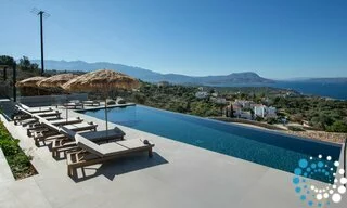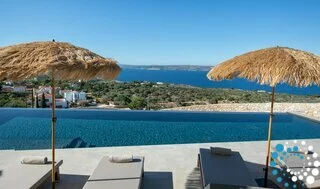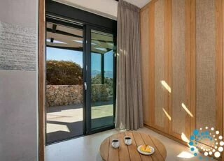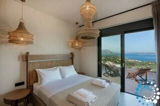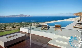 Step outside to your private oasis and soak in panoramic sea and sunset views that stretch across the bay. The spacious outdoor area features a private heated pool (available at an extra cost) equipped with Hydromassage jets, providing the perfect spot to unwind after a day of exploring Crete’s coastline.