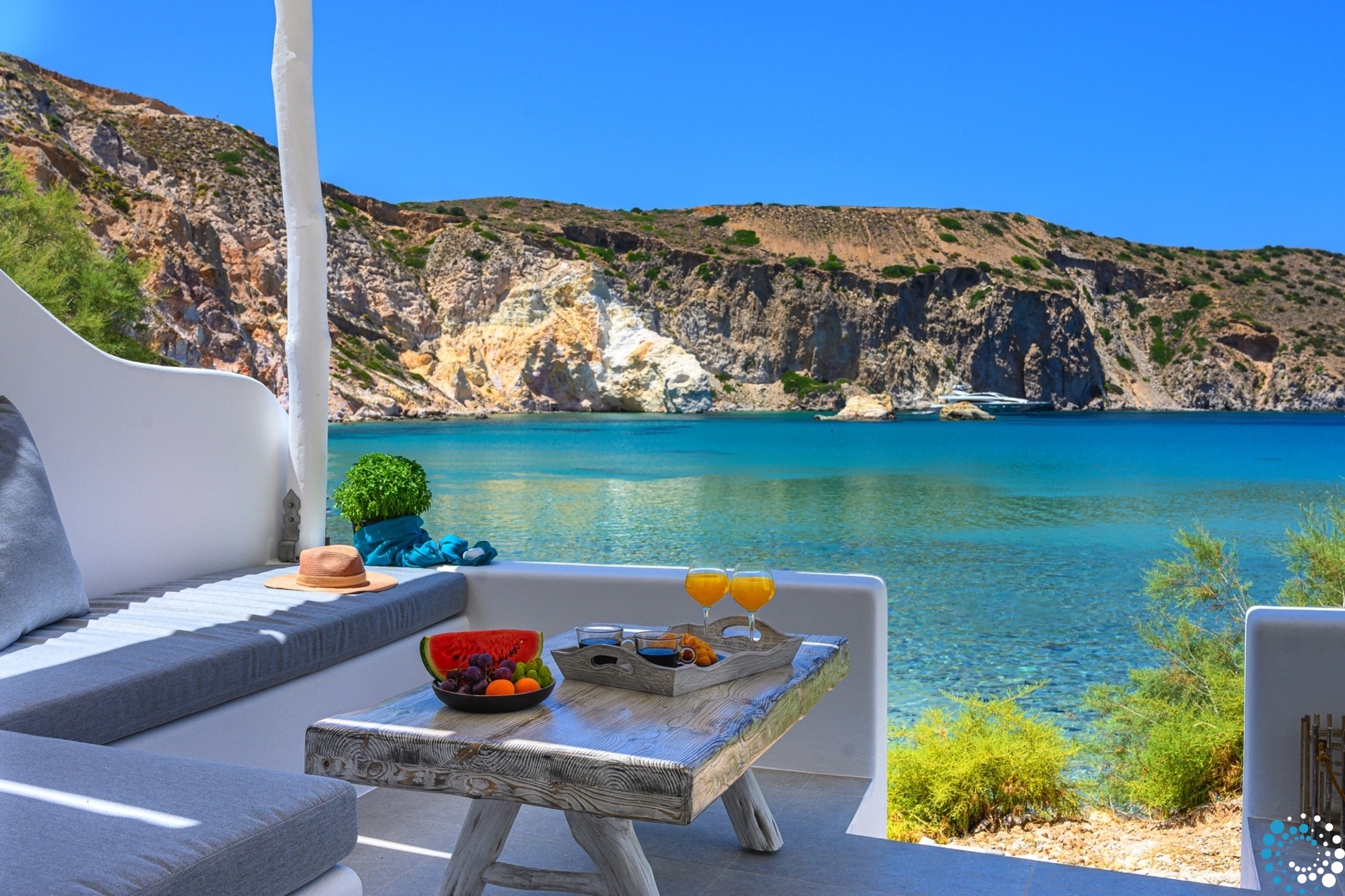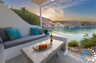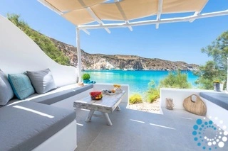 Villa Azzurra is part of a charming complex featuring two elegant suites on Milos, designed in a contemporary Cycladic style. The villa promises a perfect setting for carefree, romantic getaways in Fyropotamos. The sea is just steps away from the suites, inviting you to indulge in daily swims in the crystal-clear turquoise waters.