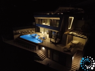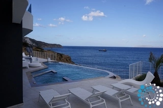 Outdoors, Villa Bluehaven unveils a truly breathtaking setting: a spectacular infinity pool seemingly merging with the horizon, enhanced by hydromassage jets and a graceful cascading waterfall. A refined, fully equipped BBQ dining area invites elegant alfresco gatherings, where evenings unfold under starlit skies in an atmosphere of effortless sophistication. Adding to its exclusivity, the villa offers private access to the sea, allowing guests to descend directly from the property and discover the hidden sea caves along the coastline—an intimate and privileged experience reserved for only a select few.