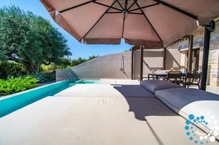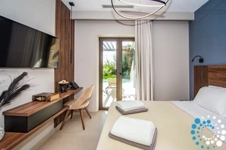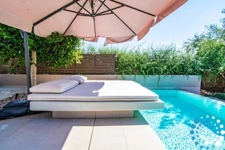 Welcome to the newly built, exclusive Villa Bougainvillea, your ultimate nature retreat. This private sanctuary features two spacious bedrooms, configurable with either two king-size beds or one king-size bed plus two twin beds, and a modern bathroom with a walk-in shower. Step out onto your generous private patio, where a built-in hot tub and private swimming pool await. Guests can also explore the surrounding olive grove garden and unwind in the expansive lounge area, complete with a main swimming pool and a dedicated kids’ pool.