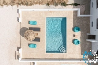 Villa Bright offers a spacious balcony overlooking the villa’s private pool, creating a pleasant spot for recreation and leisure. On the first floor, discover a fully equipped kitchen with modern amenities, a comfortable dining area with TV and air conditioning for moments of pure relaxation, a bedroom furnished with a double bed, air conditioning, TV, and wardrobe, and a stylish bathroom with a refreshing shower. The downstairs floor has a laundry machine, a bathroom with shower, and two bedrooms, while each bedroom is customized for maximum comfort, with TVs, air conditioning, comfortable beds, refrigerators, and wardrobes. Indulge in modern luxury at Villa Bright, where the combination of convenience and elegance ensures an unforgettable stay.