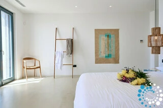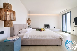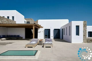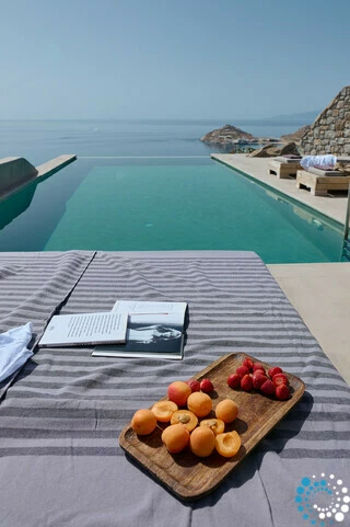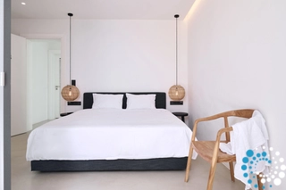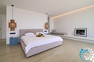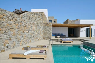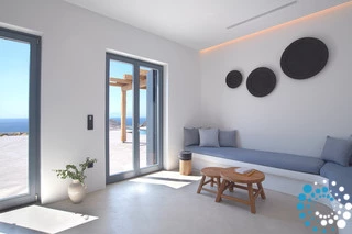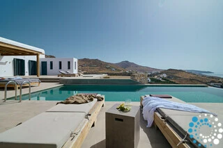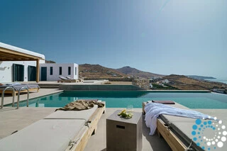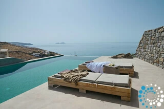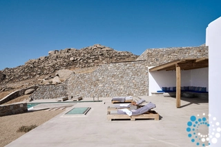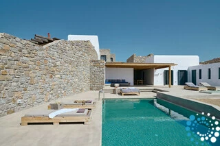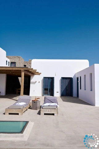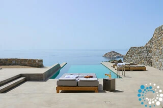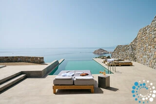 Enjoy breakfast in a pergola-shaded lounge, indulge in fine dining on the expansive terraces, or float dreamily in your fabulous infinity pool where the cerulean sky seamlessly meets the sea. Spellbinding, minimalist, and cool living and sleeping areas overlook the sun-drenched landscape of Mykonos. Breathtaking open skies, outdoor summer living, and an infinity pool to die for.