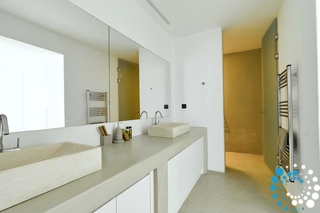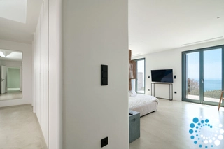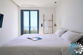 This stylish 210 sq.m. 4-bedroom residence belongs to a complex of three independent vacation homes. The house consists of two levels: the ground level features a living room, a fully equipped kitchen, a bedroom with an independent entrance, and a bathroom, while the other three bedrooms and four bathrooms are located on the lower level, all with access to verandas and large windows overlooking the Aegean Sea.