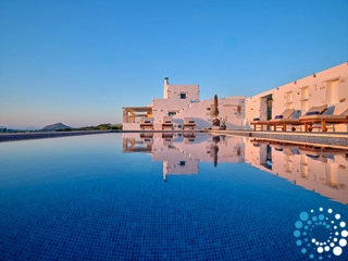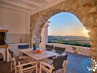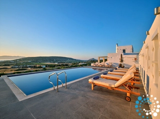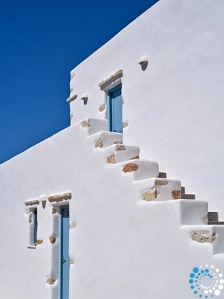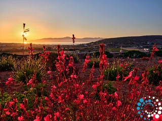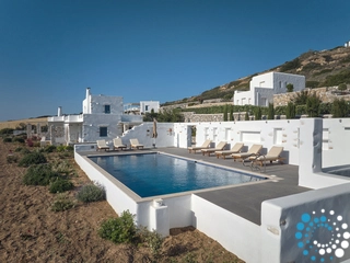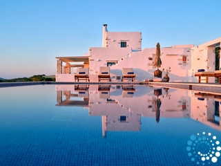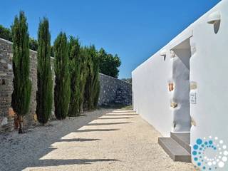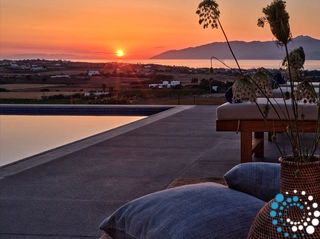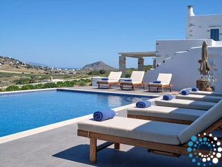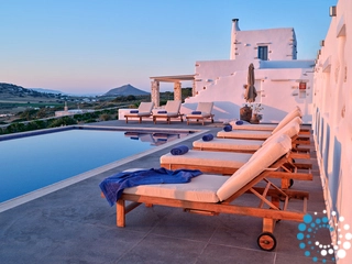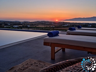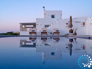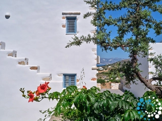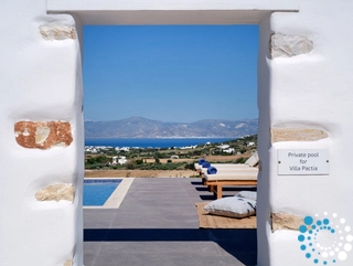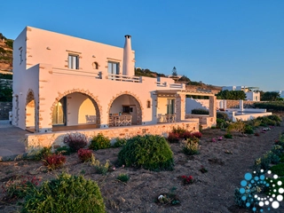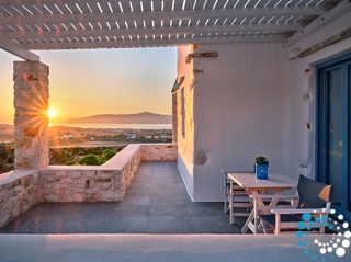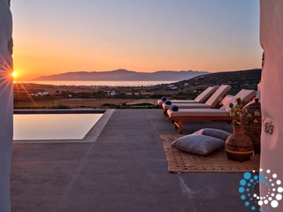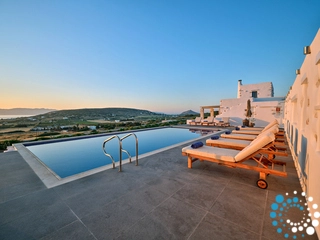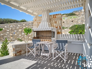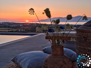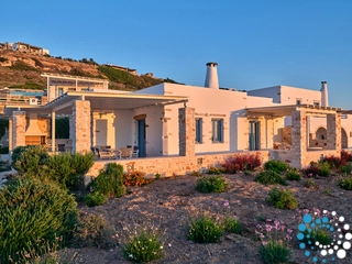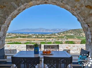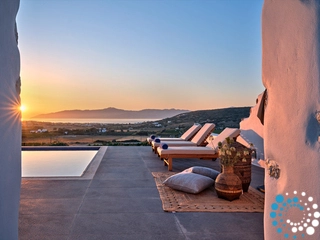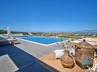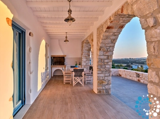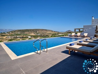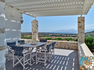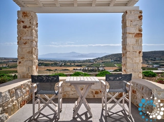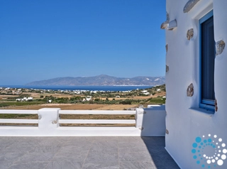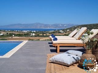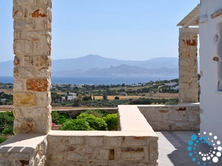 The villa is located on the eastern side of Paros, on a hill at Vardies/Isterni, just 3 km from the centre of the traditional and famous fishing village of Naousa, and about 2 km from the beach of Isterni. It offers panoramic 180-degree views of the sea and the neighboring islands of Mykonos, Naxos and Iraklia, inviting the visitor to relax and enjoy. Shopping facilities are conveniently located within 1-2 km distance.